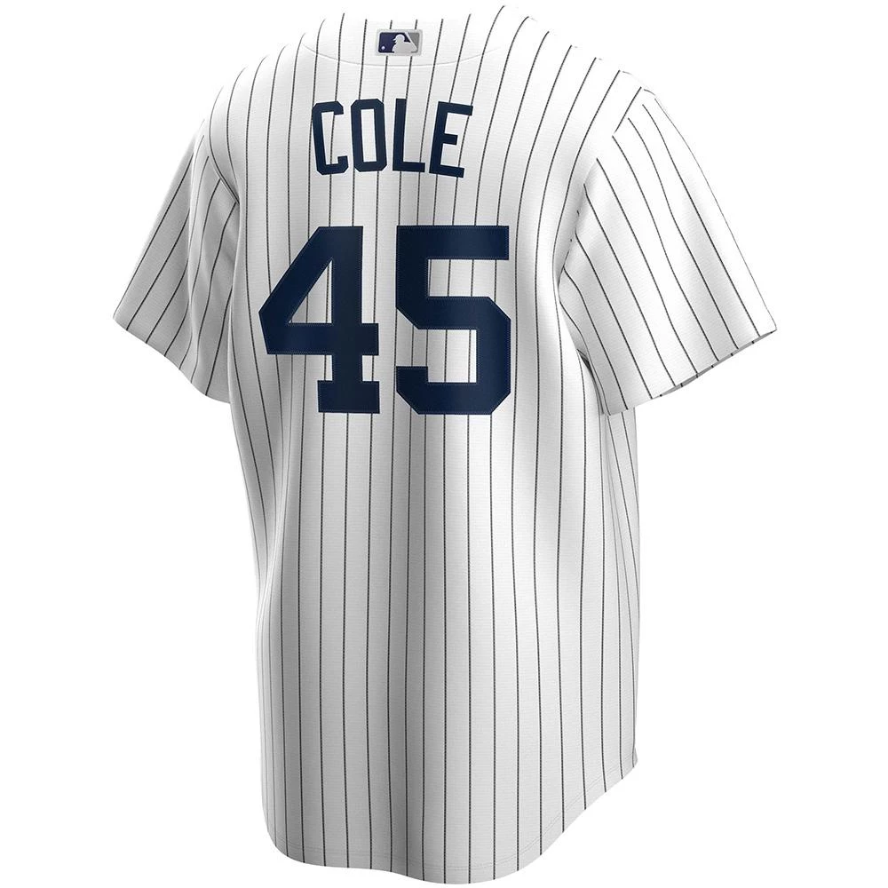 The styling, the material, the graphics! Show your pride with this New York Yankees Gerrit Cole Cool Base Replica® jersey. This jersey features vivid logos and colors, a tailored fit for movement and Cool Base® technology made with interlocking moisture-wicking fabric for a lightweight, breathable feel. Graphics are tackle twill like the pros wear. The Cool Base jock tag above the left hem is heat sealed. The no-tag neck label provides clean comfort with the MLB Batterman patch on back of neck. Enjoy the game!